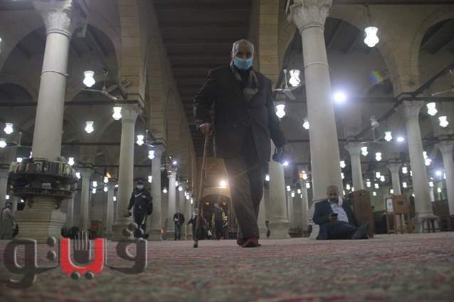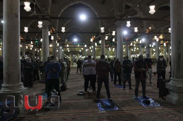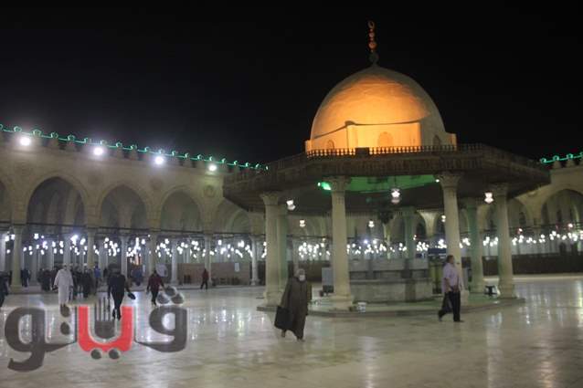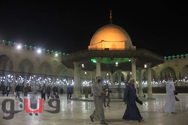 توافد المصلين على مسجد عمرو بن العاص لأداء صلاة التراويح| صور