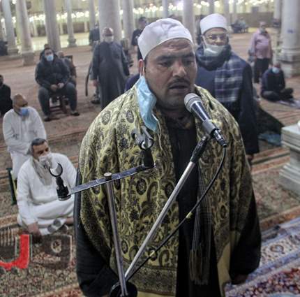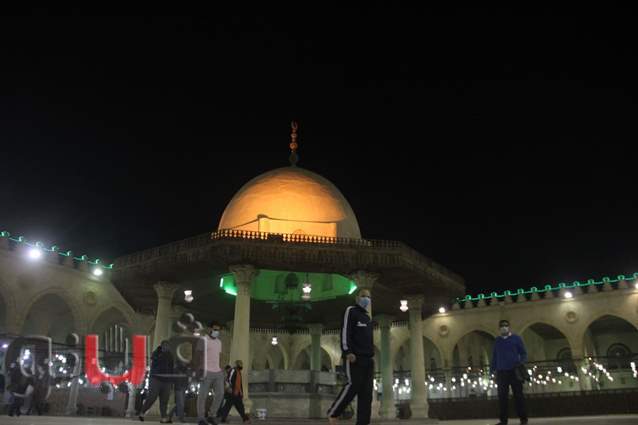 من المواطنين على مسجد عمرو بن العاص في مدينة الفسطاط بمصر القديمة، لأداء أول صلاة تراويح