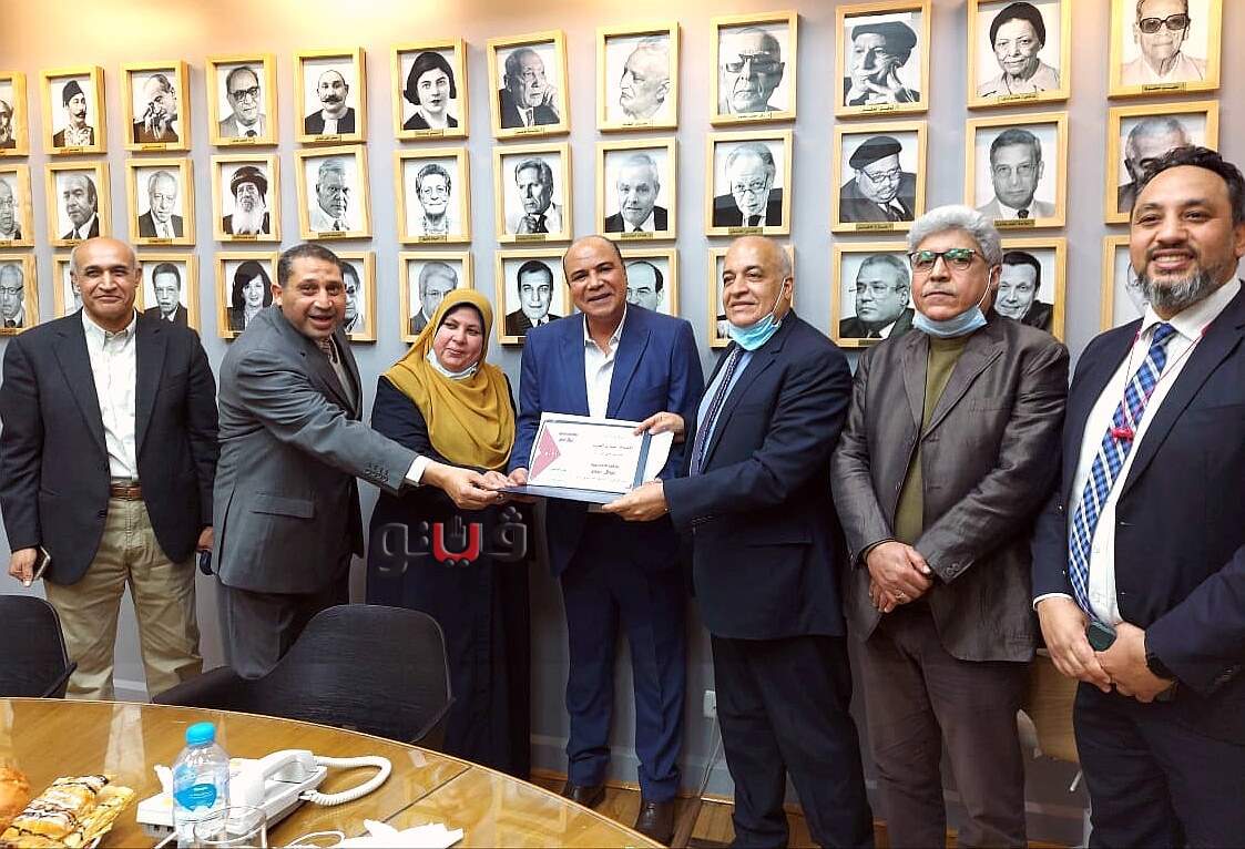 سلامة، نفيب الصحفيين السابق ورئيس مجلس إدارة مؤسسة الأهرام، بتسليم جوائز