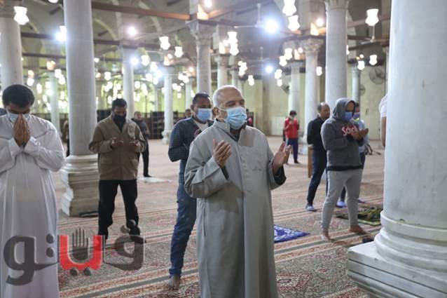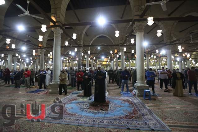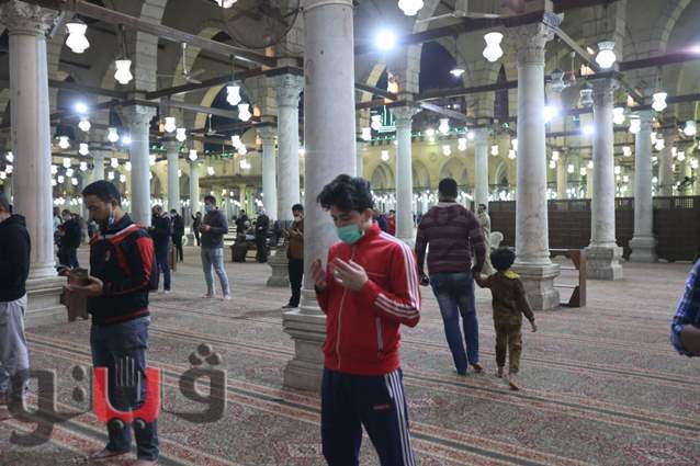 وتوافد الآلاف من المواطنين على مسجد عمرو بن العاص في مدينة الفسطاط، لأداء أول صلاة تراويح داخل المسجد، وسط إجراءات احترازية شديدة لحماية المصلين من الإصابة بفيروس كورونا المستجد.
