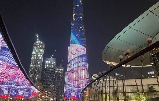 الإمارات تحي ذكرى أول رحلة فضائية بعرض صورة جاجارين على برج خليفة