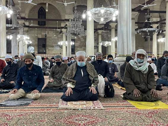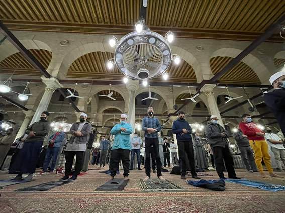 قلوب المصلين في ثاني صلاة للتراويح بمسجد الحسين، بعد توقفها بشكل كامل في شهر