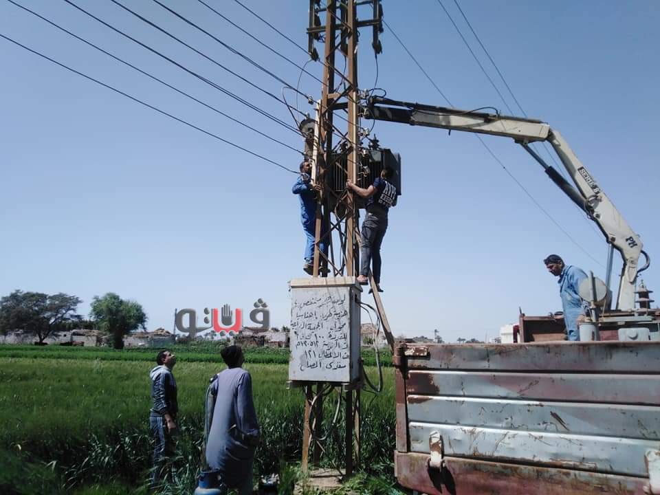 رفع كفاءة محولات الكهرباء بـ 4 قرى وصيانة 135 كشاف إنارة ببني سويف