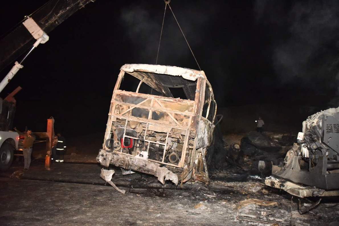 وعلى الفور توجه المحافظ لمكان الحادث وانتقلت قوات الحماية المدنية والاسعاف الى مكان الحادث وتم الاستعانة ب36 سيارة اسعاف وتم نقل 3 مصابين الى المستشفى الجامعى، ونقل 20 جثة الى المستشفيات المركزية وتم وضع حواجز مرورية وتعديل حركة المرور بالطريق منعا للتزاحم وتابع المحافظ نقل المصابين والجثث ورفع السيارة والاتوبيس وتسيير الحركة المرورية.