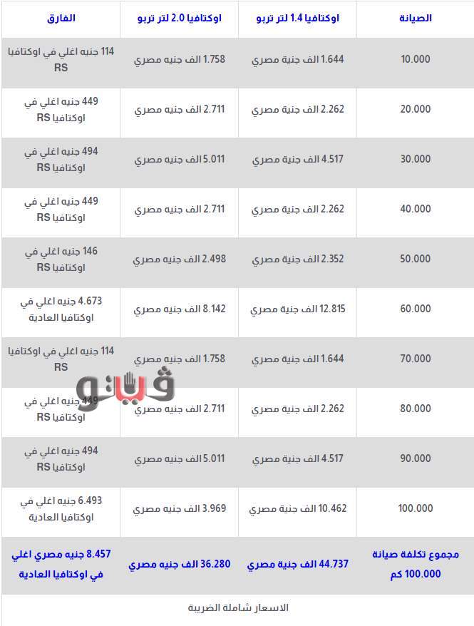تنشر "فيتو" اسعار الصيانات الدورية لجميع فئات سيارة سكودا اوكتافيا 2021
