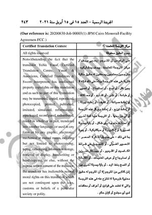 وينص القرار على الموافقة على اتفاقية تسهيل قرض لأجل بين الهيئة القومية للأنفاق (بصفتها المقترض) وجي بي مورجان يورب ليمتد (بصفته وكيل التسهيلات)، وبنك بي جي مروجان تشيس إن إيه فرع لندن (بصفته المنظم الرئيسب المفوض الأولى) ومؤسسات مالية محددة (بصفتهم المقرضون الصليون) بمبلغ 1.88 مليار يورو الموقعة بتاريخ 13 /8 /2020، وذلك مع التحفظ بشرط التصديق.