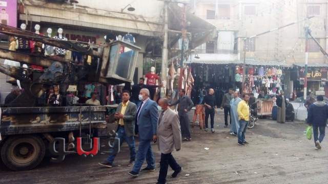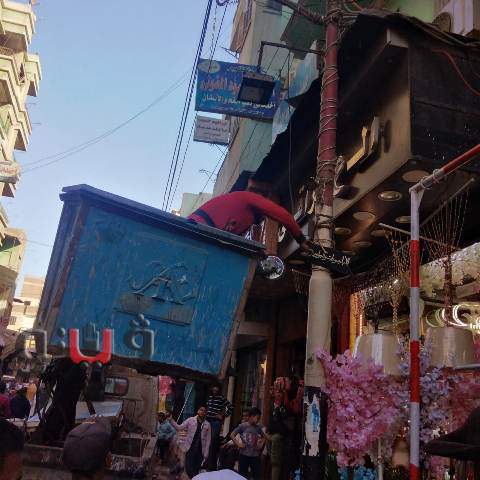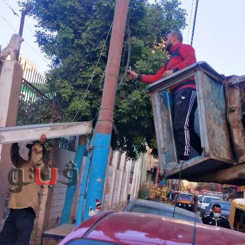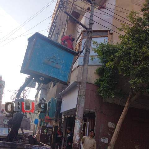 رفع الوصلات الكهربائية والإعلانات المخالفة بشوارع بلبيس