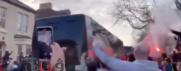 وأظهر مقطع فيديو على "إنستجرام" مجموعة من جماهير ليفربول، بعضهم يحمل ألعابا نارية ويطلق صيحات استهجان، عند وصول الحافلة، بينما أظهر فيديو آخر على "تويتر" تحطم جزء من إطار النافذة الخارجي للحافلة.