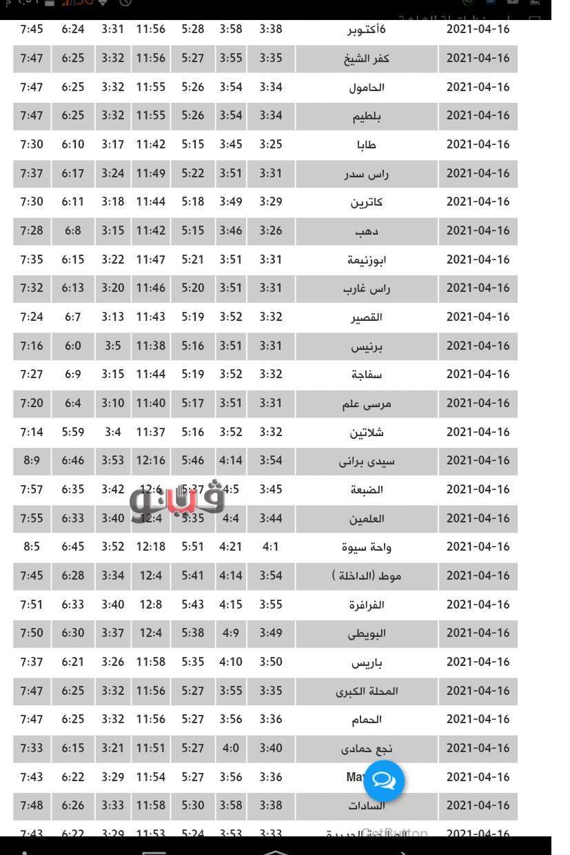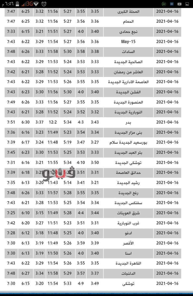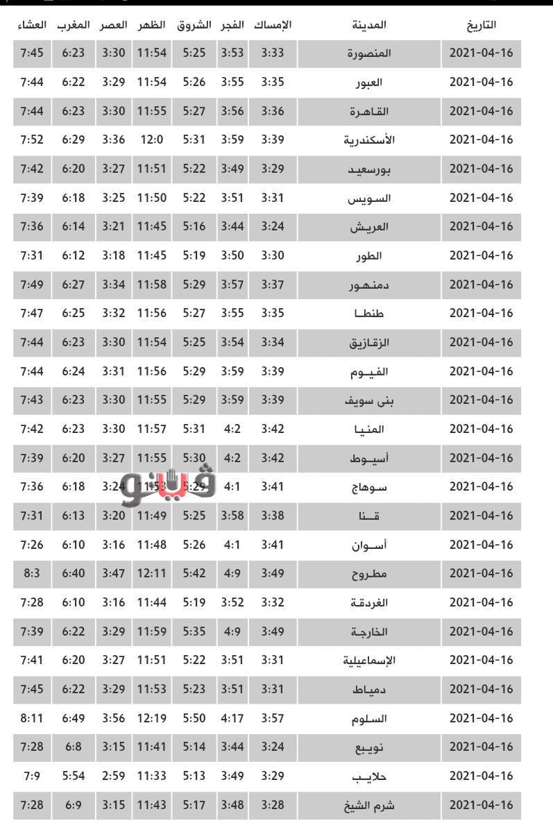 ويوضح الجدول مواقيت الصلاة اليوم كالتالي:،
