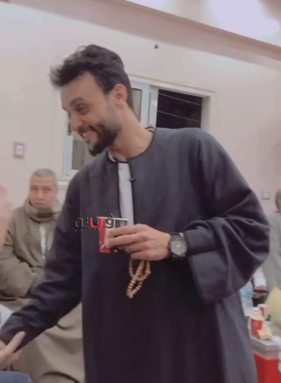 بالجلابية والسبحة.. لاعب بالدوري المصري يتوسط للصلح بين عائلتين في مغاغة | صور