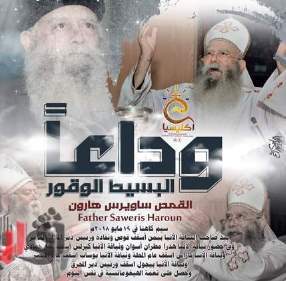 وتقدم البابا تواضروس الثاني، بابا الإسكندرية بطريرك الكرازة المرقسية، بخالص العزاء إلى الأنبا بيمن أسقف إيبارشية نقادة وقوص ولمجمع كهنة الإيبارشية في وفاة القمص ساويرس هارون، ملتمسا عزاءً سمائيًا لشعب كنيسته ولأسرته طالبًا لنفسه النياح والراحة النصيب والميراث مع جميع المقدسين.