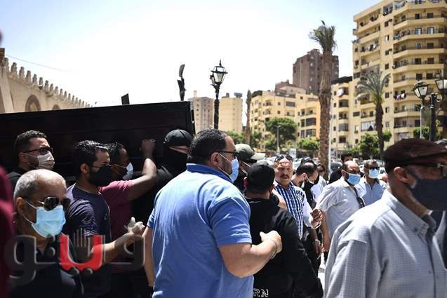 لحظة تشييع والدة أحمد خالد صالح من مسجد عمرو بن العاص | صور