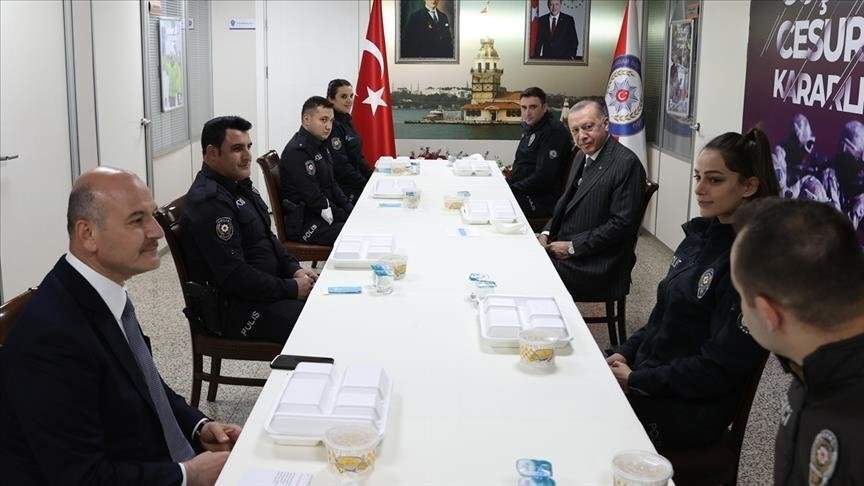 وحل أردوغان ضيفا على مركز "تشنغل كوي" للشرطة، بمنطقة أوسكودار، وشارك عددا من رجال الشرطة طعام الإفطار، رفقة وزير الداخلية، سليمان صويلو، وقائد شرطة اسطنبول، ظفر أقطاش.