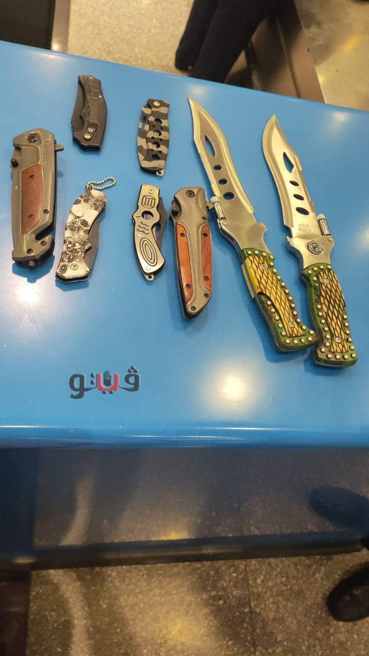 ضبط محاولتين لتهريب أقراص مخدرة وأسلحة بيضاء بمطار القاهرة | صور