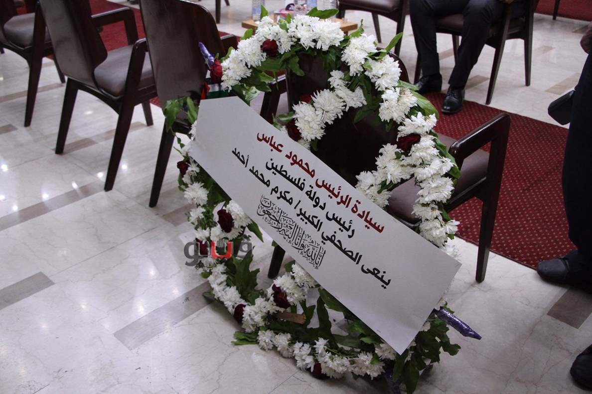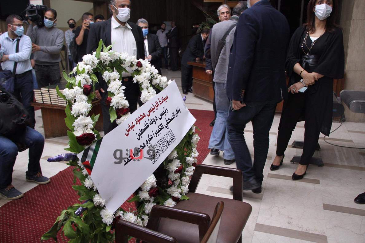 الرئيس الفلسطيني يرسل باقة ورد في عزاء مكرم محمد أحمد | صور