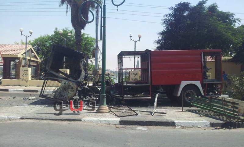 كما أحرق أعضاء الجماعة الإرهابية مقر مبنى الأمن الوطنى بشارع عبد السلام عارف، ومجموعة من سيارات الشرطة والإطفاء التى كانت موجودة فى شوارع المدينة يوم فض اعتصامى رابعة العدوية والنهضة ، ومحاولة التعدى على مسجد عمر بن عبد العزيز.