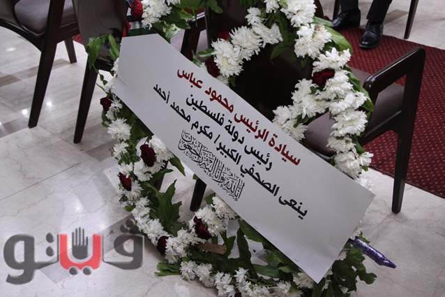 وبعث الرئيس الفلسطيني محمود عباس أبو مازن، باقة ورد إلى مؤسسة الأهرام، تعبيرا عن احترامه وتجليله للكاتب الصحفي مكرم محمد أحمد الذي وافته المنية أول أمس بعد صراع قصير مع المرض في أحد المستشفيات.