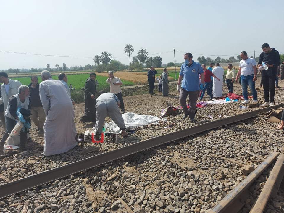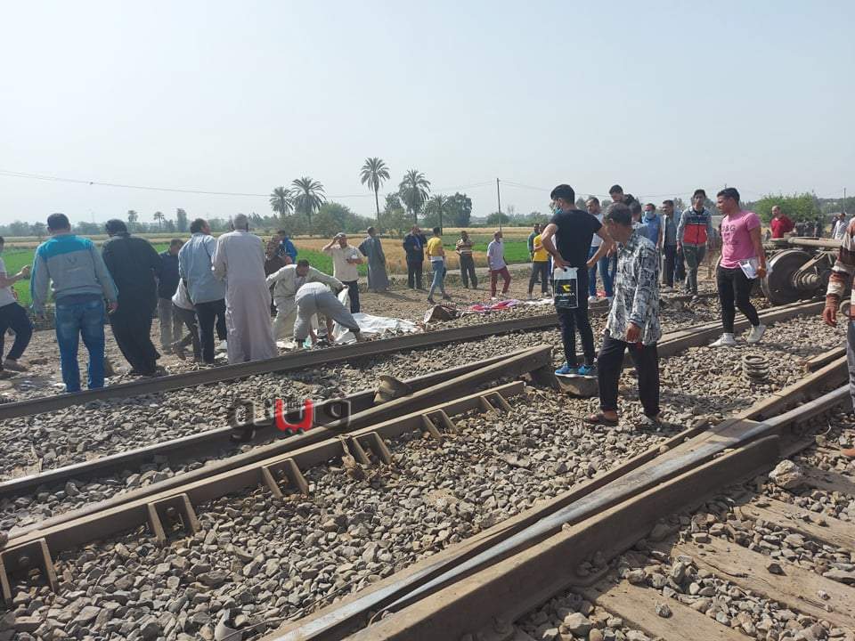 جثث ضحايا حادث قطار طوخ على القضبان | صور