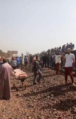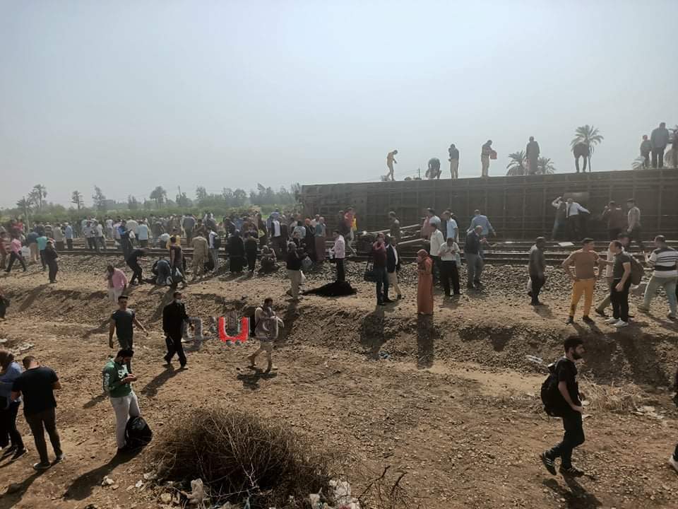 كلنا يبحث عن ضالته فى حادث القطار المنكوب ما بين أخ وصديق او اخت وابن وابنه كلنا يبحث عن ما سقط منه غير ان اخرين اصبحوا جثث ودمائهم تغطى مكان الحادث ، تسارع المواطنين فى تغطيتهم بقطع القماش وينتظرون سيارات الاسعاف لنقلهم .