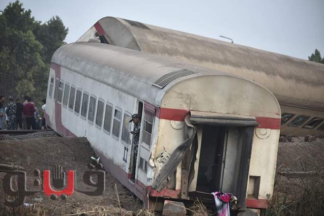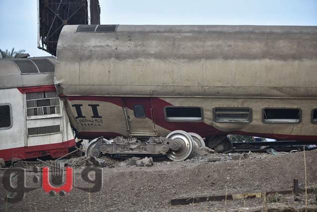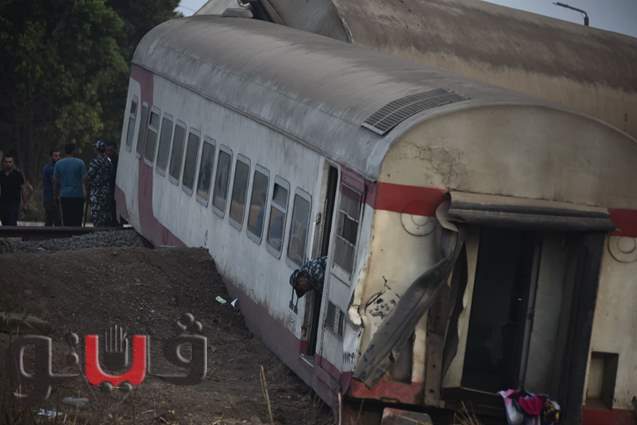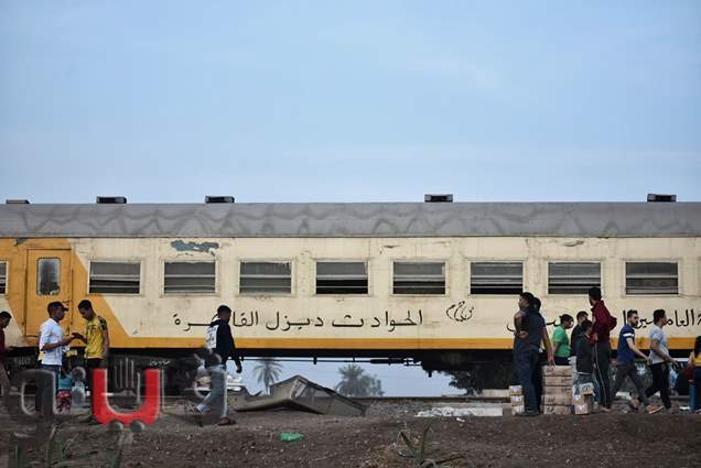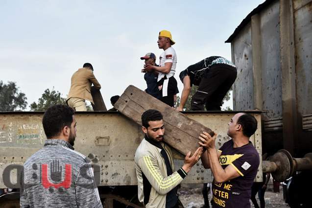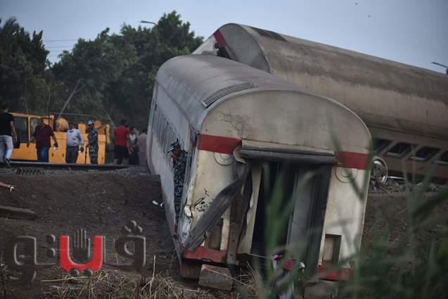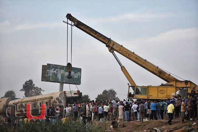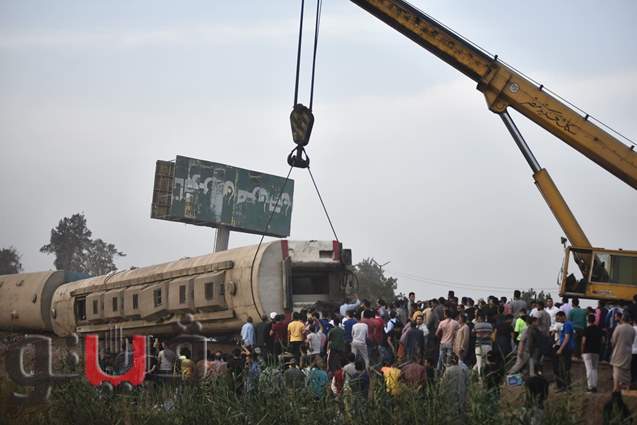 لحظة رفع عربات قطار القليوبية
