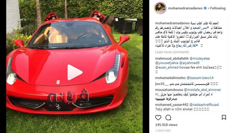 كما يمتلك محمد رمضان، سيارة فيراري، ويصل سعرها ما يقرب من 5.5 مليون جنيه مصري.