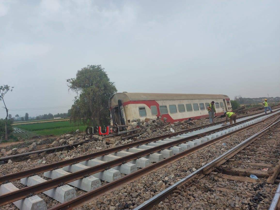 استمرار رفع آثار حادث قطار طوخ وإعادة تأهيل القضبان والفلنكات | فيديو وصور