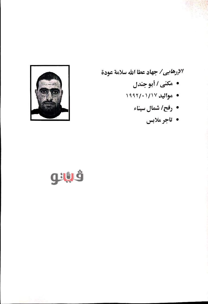 وتم تحديد اثنين من العناصر الإرهابية التي لقيت مصرعها وهما القيادي الارهابي محمد زيادة سالم زيادة حركي عمار والذي يعد من اخطر العناصر الارهابية وتولي الإعداد والتخطيط والتنفيذ للعديد من الحوادث الإرهابية التي شهدتها محافظة شمال سيناء.