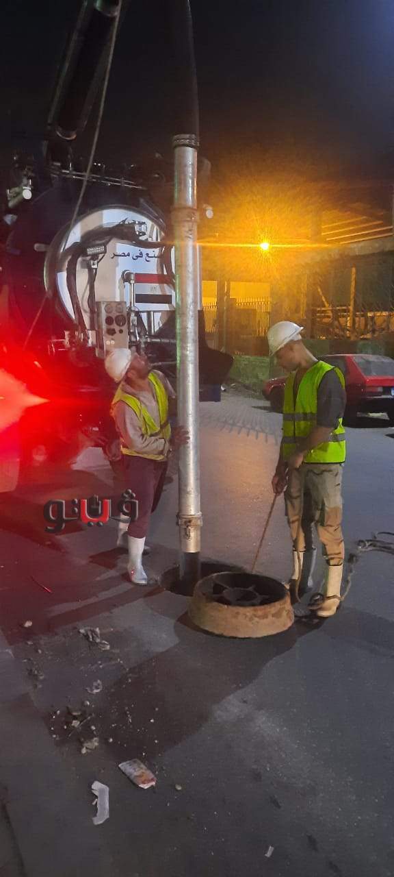تطهير شبكه الصرف الصحي بشارع ربيع الجيزى