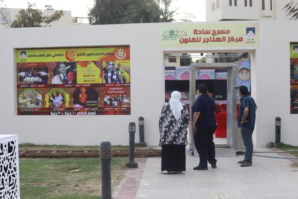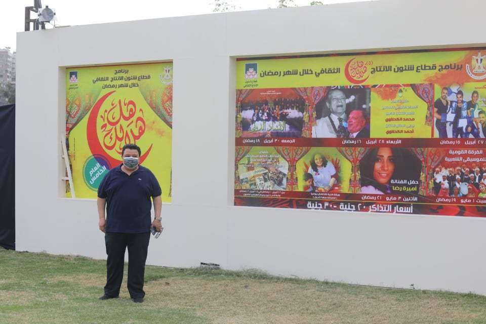 تفقد المخرج خالد جلال، اليوم الإثنين، استعدادات وتجهيزات مسرح ساحة مركز الهناجر للفنون بدار الأوبرا المصرية، ليضع اللمسات الأخيرة للمسرح لاستقبال برنامج "هل هلالك" فى نسخته الخامسة، الذى من المقرر استمرار فعالياته حتى ٢١ رمضان الموافق 3 مايو المقبل.