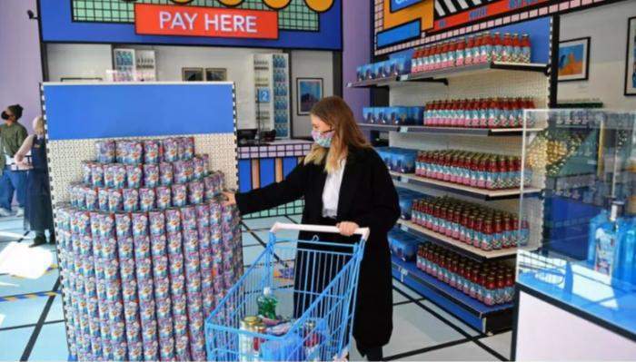 تحول المتجر المخصص للتذكارات بمتحف "ديزاين ميوزيوم" في لندن، الأربعاء، إلى "أول متجر سوبر ماركت صممه فنان في العالم" لبضعة أيام.