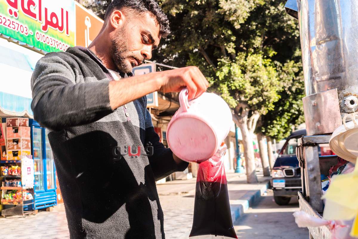 وأشار في حديثه لـ"فيتو" إلي انه هو من يقوم بإعداد منتجاته بنفسه، ويقوم بحفظها في ثلاجة عربته الخاصة به.