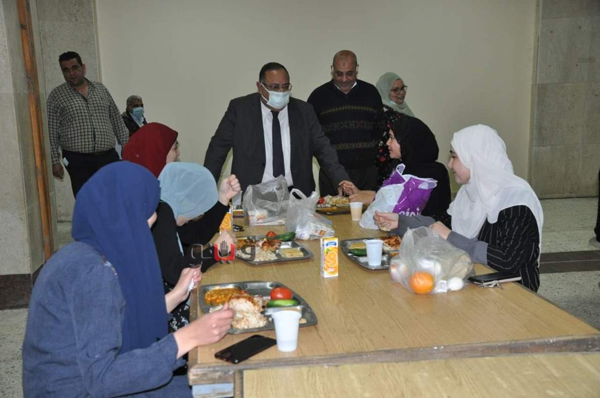 رئيس جامعة حلوان يشارك الطلاب الإفطار الرمضاني.. صور