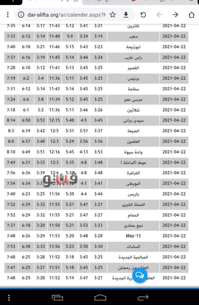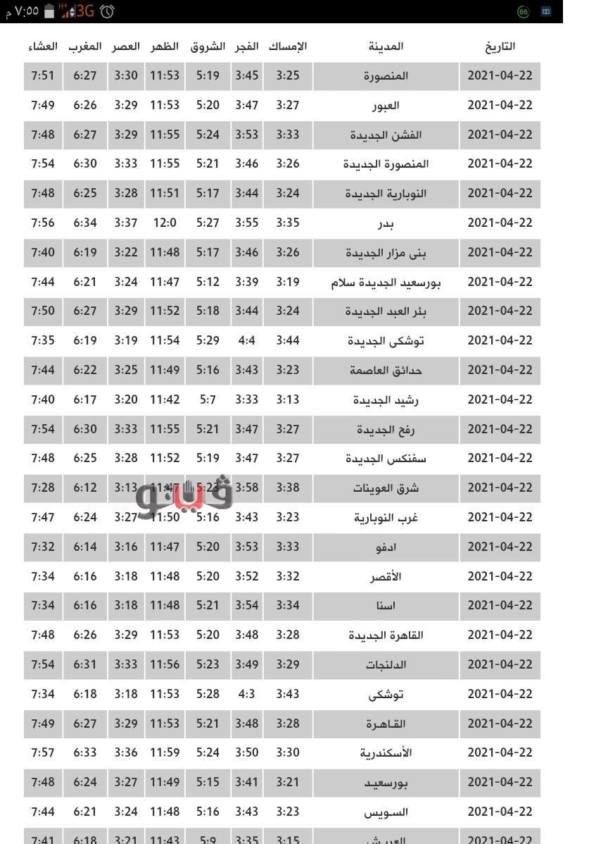 ويوضح الجدول مواقيت الصلاة اليوم كالتالي: