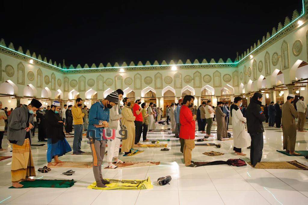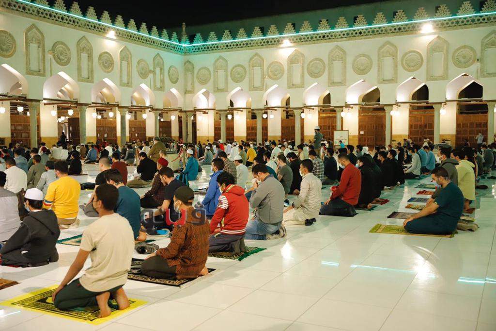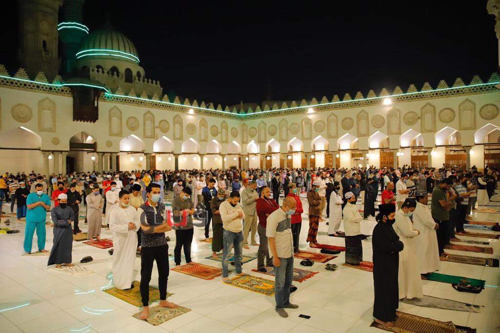 أدى المئات من المصلين صلاتي العشاء والتراويح في الجامع الأزهر، وسط إجراءات احترازية مشددة لمواجهة انتشار فيروس كورونا المستجد.