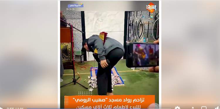 ورصدت غرفة عمليات وزارة الأوقاف، قيام قناة الشرق بنشر الفيديو على صفحتها الرسمية على الفيس بوك تحت عنوان: "تزاحم رواد مسجد صهيب الرومي للتبرع لإطعام 3 آلاف مسكين"، وذلك على خلاف التعليمات التي أصدرتها وزارة الأوقاف بمنع جمع أي تبرعات داخل المساجد حتى لا يتم توظيفها لخدمة أي طرف.