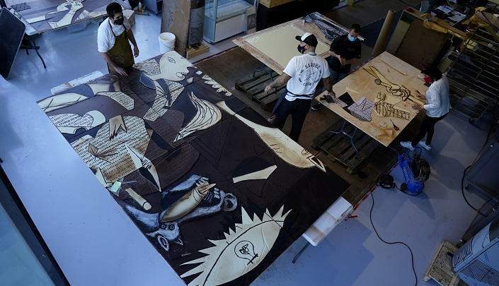تعمل مجموعة من صانعي الشوكولاتة في إقليم الباسك بإسبانيا على إنتاج نسخة من لوحة "جيرنيكا"، تحفة الرسام بابلو بيكاسو التي تصور قصف مدينة صغيرة في إقليم الباسك عام 1937، لاستعراض مهاراتهم والاحتفاء بتراثهم الثقافي.