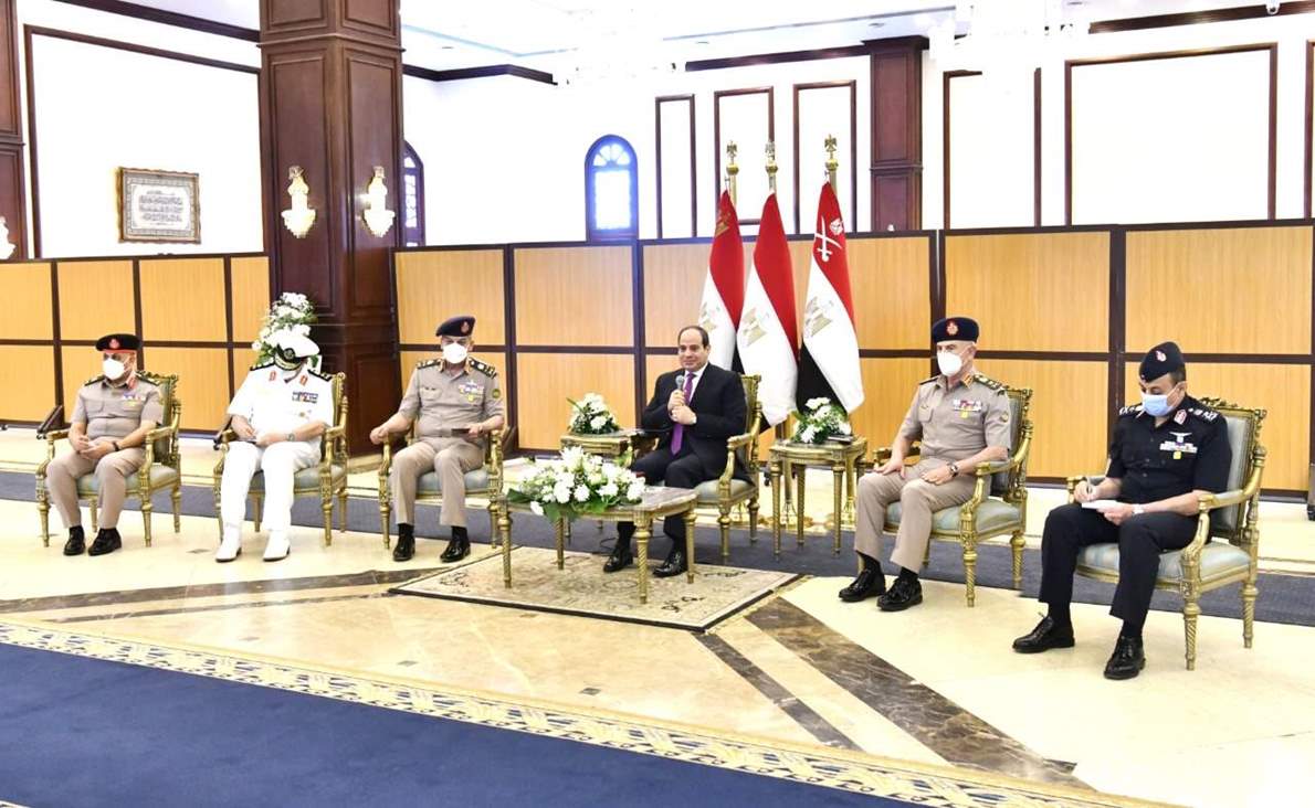 وناقش الرئيس عددا من كبار قادة القوات المسلحة في بعض الموضوعات المتعلقة بالأمن القومي المصري والتحديات التي تواجهها الدولة المصرية، مؤكدا أن رجال القوات المسلحة هم امتداد لجيل أكتوبر العظيم يؤدون واجبهم بكل تفان وإخلاص للحفاظ على الوطن وصون مقدساته.