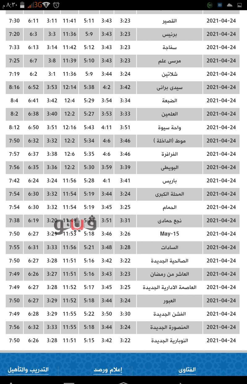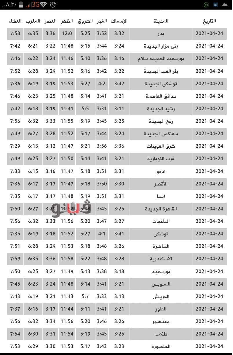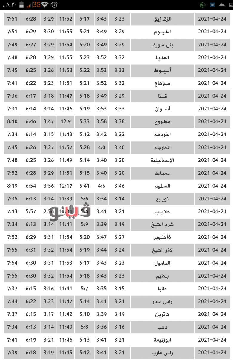 ويوضح الجدول مواقيت الصلاة اليوم كالتالي: