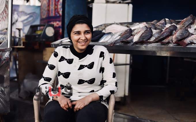 لم تكن «تغريد»، الطالبة بكلية الخدمة الاجتماعية بجامعة حلوان، والتي احترفت لعبة «الكيك بوكسينج» منذ عدة سنوات، تتوقع في يوم من الأيام أن تقف في هذا المكان، خلف طاولة بيع السمك، ليس هذا فقط ولكنها تنظفه بنفسها للزبائن وتطهيه بالطرق المختلفة، ولكن القدر رتب لها هذا الأمر بدون إنذار، فقد تقاعد الأب عن عمله في سن مبكر وقرر أن يفتح محلًا لبيع الأسماك، «لقيت نفسي عايزة أقف في محل والدي لبيع السمك لما فتحه وقت تقاعده بمعاش مبكر، قررت أنزل وأتعلم كل حاجة عشان أساعده في الشغل، وأكون معاه».