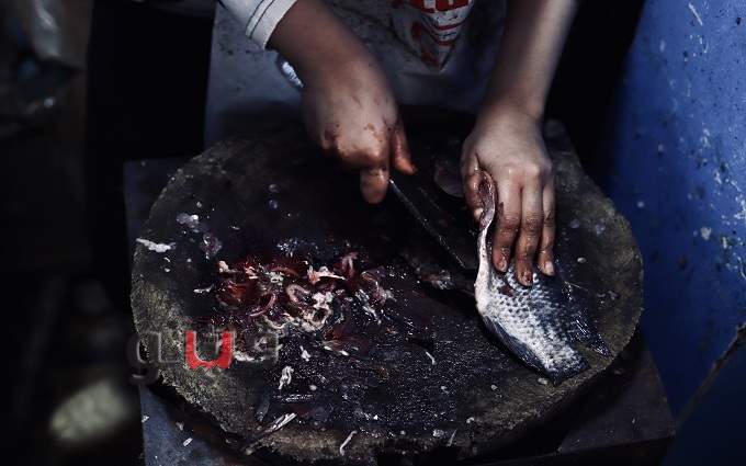 معاش والدها المبكر أجبرها على العمل.. «تغريد».. «ملكة الفسفور» في سوق السمك | فيديو