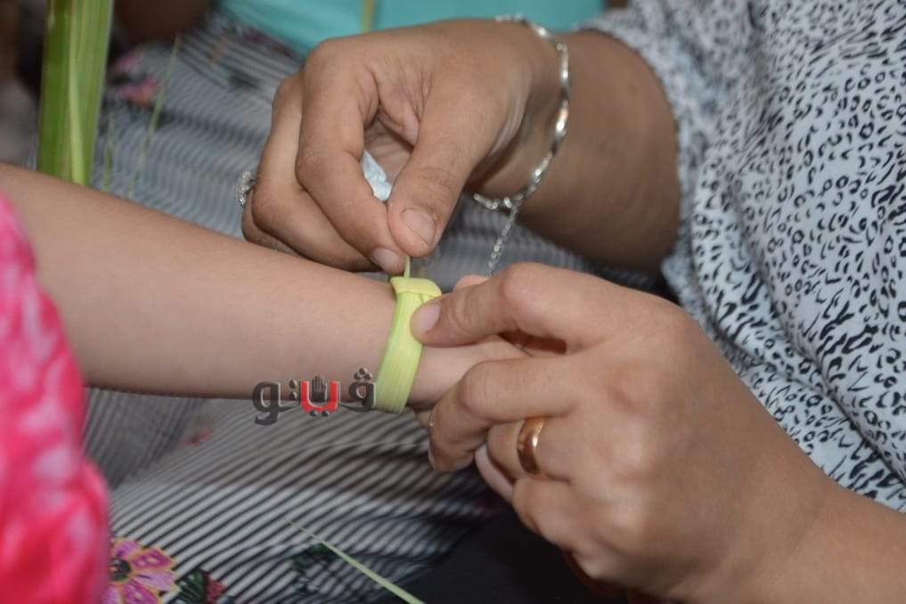 وسط فرحة عارمة من الأطفال بالعيد، صنعوا أشكال من سعف النخيل للاحتفال، بدخول المسيح إلي أورشليم كملك ليستقبله الشعب بفرح سعف النخيل، ومن هنا جاءت الفكرة والربط بين الاحتفال بالسيد المسيح واستخدام السعف، وفي ذكرى الاحتفال به .