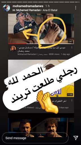 محمد رمضان: الحمد لله.. رجلي طلعت تريند
