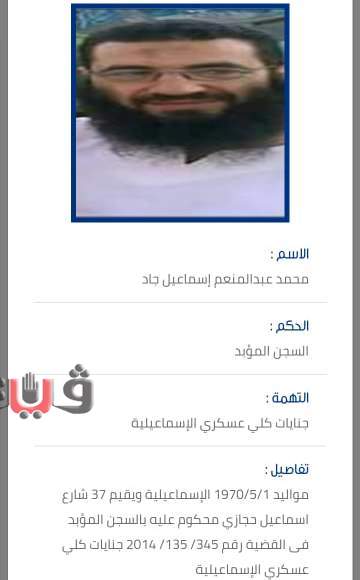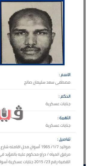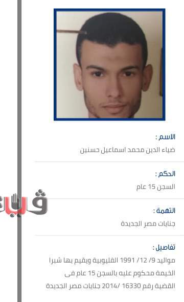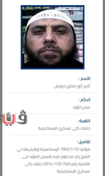 هاربون من السجون إبان أحداث ثورة 25 يناير 2011 واقتحام السجون وآخرين متهمين في قضايا قتل واغتصاب والانضمام إلى التنظيمات الإرهابية.