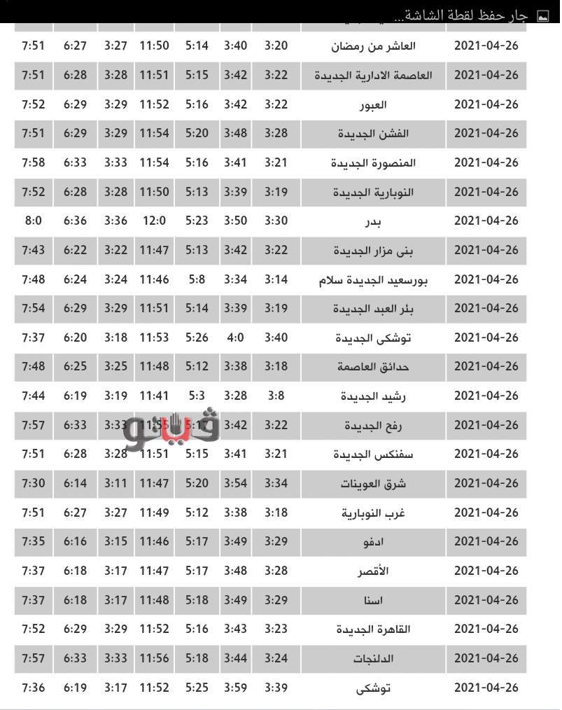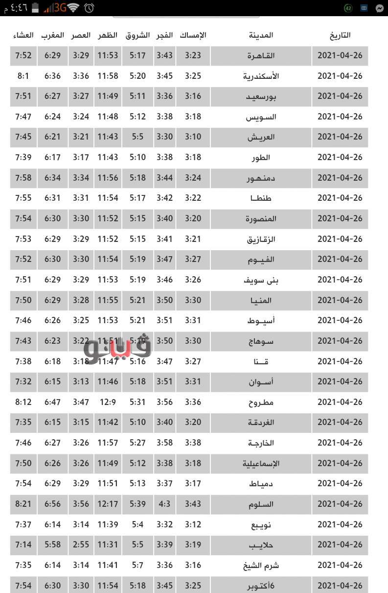 ويوضح الجدول التالي مواقيت الصلاة اليوم كالتالي: