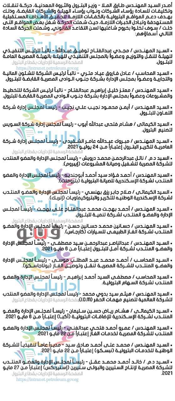 بالأسماء .. حركة تنقلات بين رؤساء شركات البترول