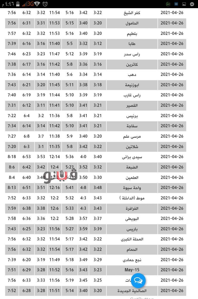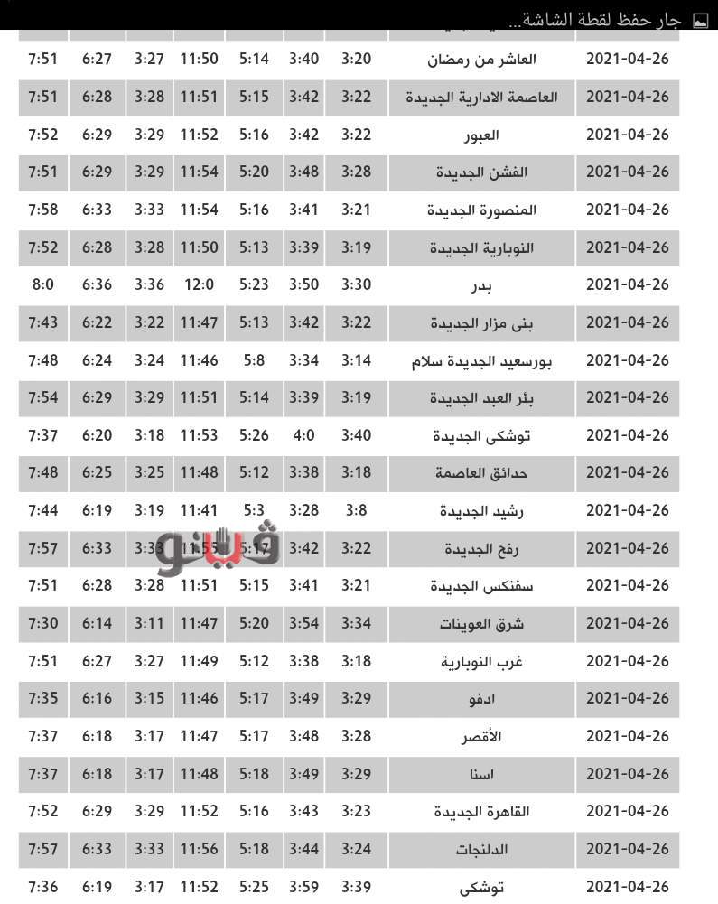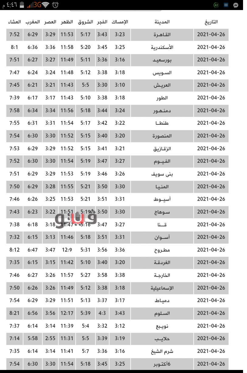 ويوضح الجدول مواقيت الصلاة اليوم كالتالي: