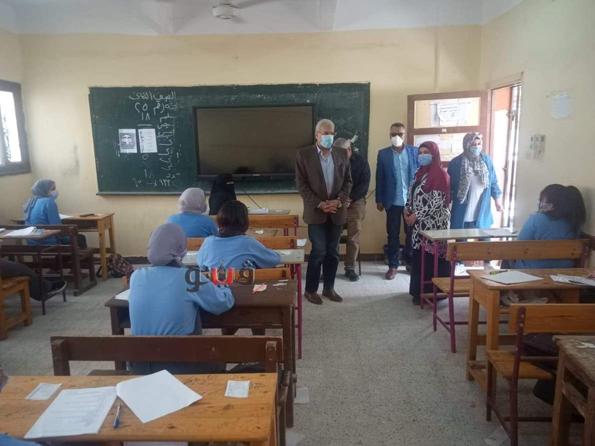 واطمأن خلال تفقد اللجان علي تنفيذ الإجراءات الاحترازية بكل حزم حيث أصدر تعليمات مشددة بضرورة ارتداء جميع العاملين والطلاب الكمامات قبل دخول المدرسة مع وجود جهاز الكاشف الحراري والمطهرات كما اطمأن سيادته علي مستوي الامتحانات .