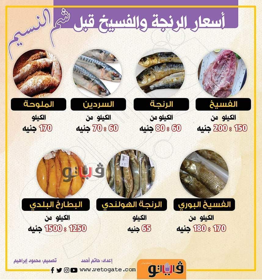 - الفسيخ: سعر الكيلو من 150 : 200 جنيه.