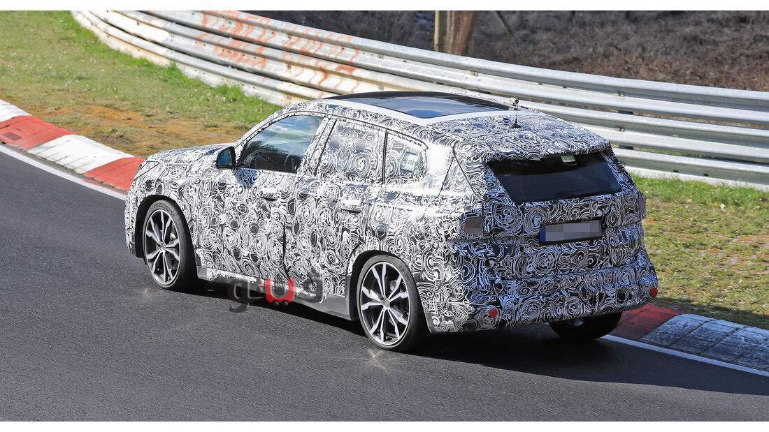 بشكل عام، تبدو سيارات الدفع الرباعي أكثر عدوانية وسمينة. على الرغم من التمويه ، فمن السهل أن ترى أن BMW لا تعتمد على "كلية" معبرة لسيارة الدفع الرباعي الصغيرة. الشبكة عريضة ولكنها مسطحة ومحاطة بالمصابيح الأمامية التي تمتد بعيدًا إلى الرفارف في الخلف ، يمكن رؤية جناح سقف أكبر مع ضوء فرامل ثالث، وتظهر النافذة الخلفية أصغر قليلاً وأنبوب العادم مخفية.