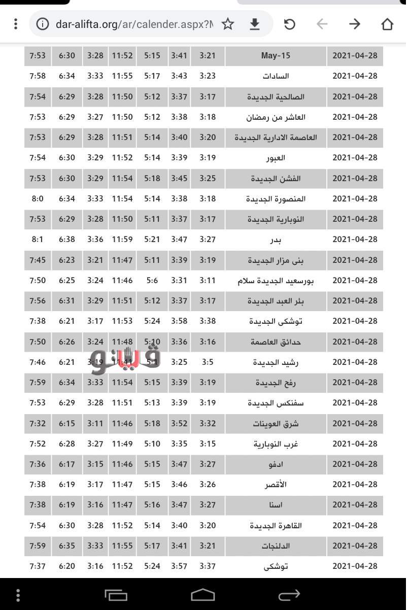 مواقيت الصلاة فى القاهرة